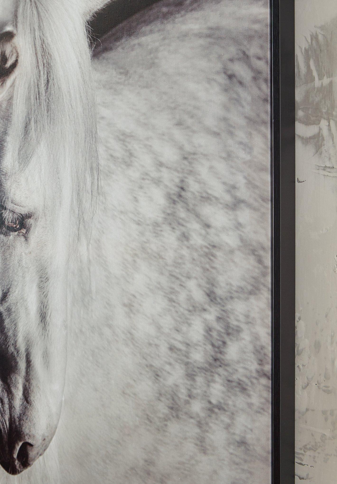 Cette œuvre d'art murale apportera une touche de raffinement à votre décoration murale. L'étalonnage noir et blanc apporte une touche d'élégance au portrait. Chic, elle s'intègre aussi bien dans les espaces décontractés que contemporains et offre une interprétation gracieuse de la beauté équine.