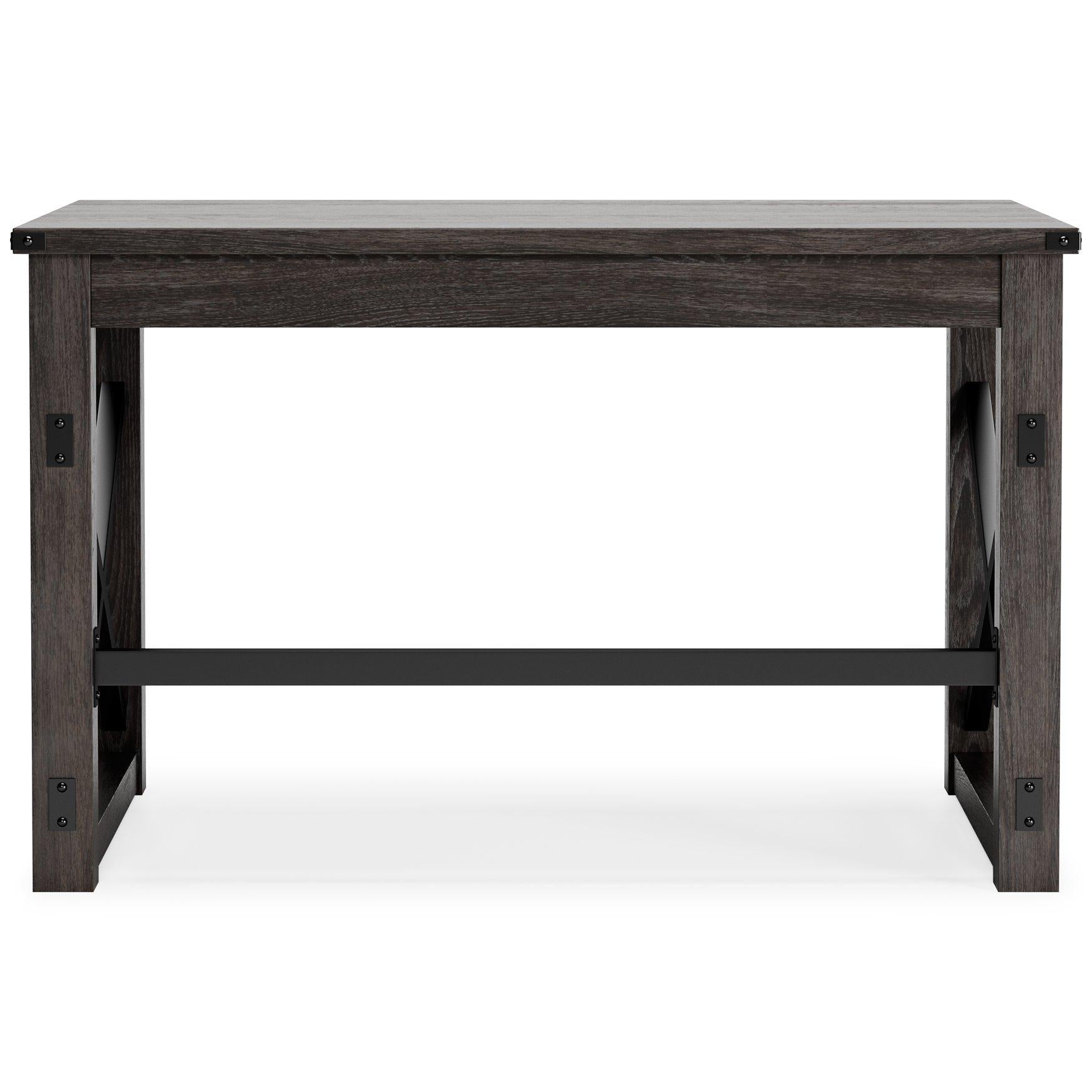 Vous appréciez l'esthétique rustique urbaine ? Mettez-la en valeur avec ce bureau au style élégant. Ce choix de mobilier de bureau à domicile, tout simplement remarquable, dégage une atmosphère rustique inimitable grâce à des éléments de design tels qu'un stratifié décoratif gris effet bois contrastant avec des traverses croisées, des touches métalliques et une traverse noire. Idéal pour ranger vos fournitures de bureau, ce bureau comprend un tiroir central pratique et sans quincaillerie pour un bureau bien rangé.