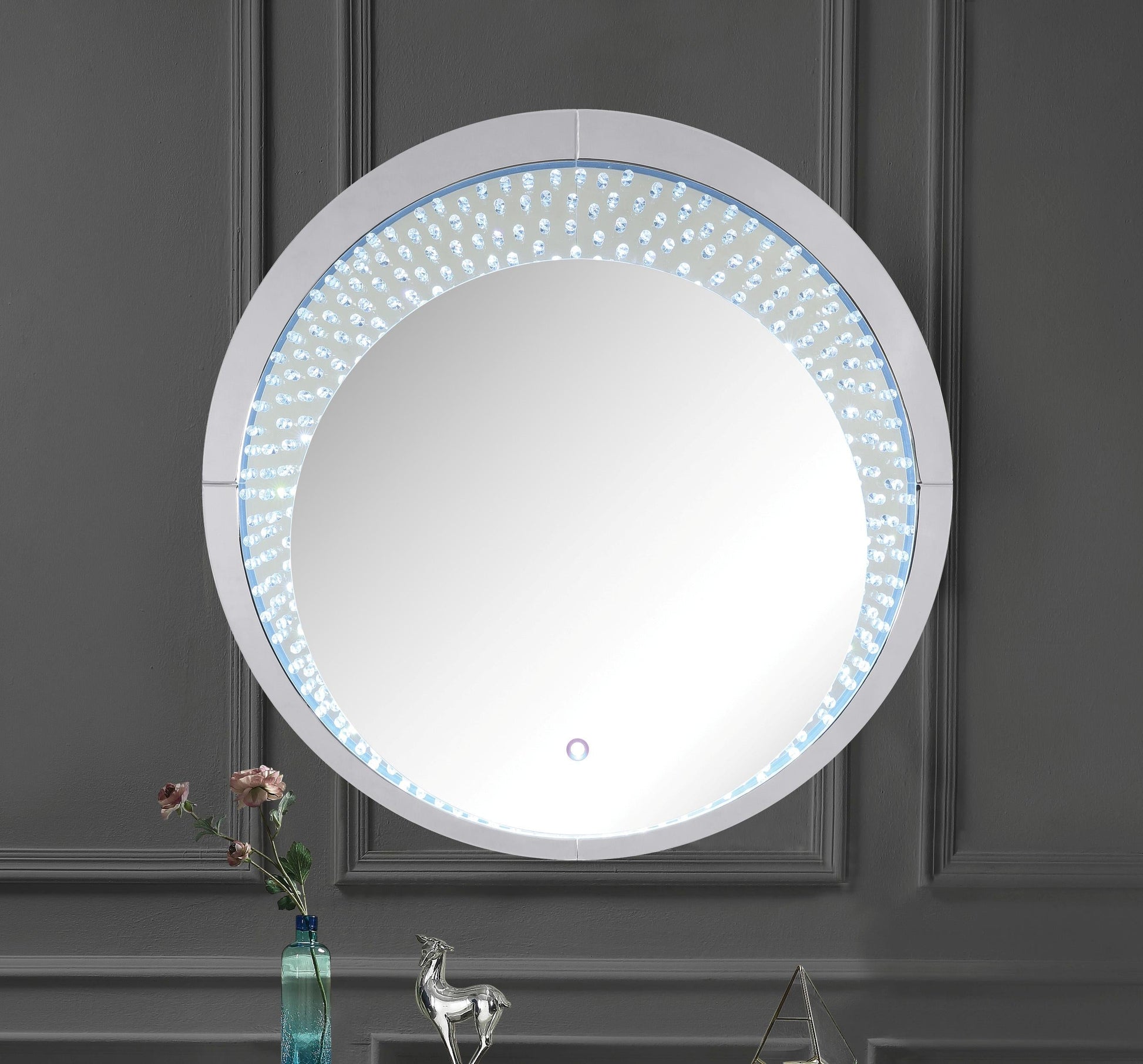 Décoration murale ACME Nysa (DEL), miroir et faux cristaux, 39 pi de diamètre, 62 lb. Caractéristiques : - Décoration murale d'accent - Éclairage LED inclus - Finition miroir biseautée - Incrustations de faux cristaux et verre trempé transparent de 4 mm Matériaux : miroir, éclairage LED, verre, faux cristaux, bois composite